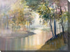 "Dreamy Day" features an abstract oil painting depicting a stream lined with tall trees looking at their reflection in the water.