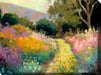 "Hilltop Hike" features an oil abstract of a trail winding through colorful landscape.