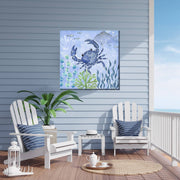 "Blue Crab" features a blue crab floating under the water enticing you to join him.
