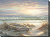"Old Dinghy" features an oil painting abstract of an old wooden boat aging among sand dunes.