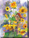 "Auntie's Garden" features an abstract oil painting of sunflowers surrounding a bird house.