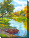 "Idle Time" features a row boat nestled against the banks of a creek during the fall.