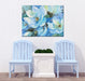 "Baby Blue Eyes" features a closeup of magnolia blooms tinted blue.