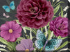 "Bold Beauties" features colorful flowers closeup visited by a beautiful butterfly.