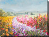 "Flowering Footpath" features an oil painting of a flowery trail winding through colorful wildflowers.