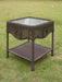 Outdoor Side Table – Resin Wicker, Aluminum, Glass