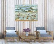 "Family Reunion" features a family of sea birds playing in the surf.