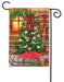 A perfect garden flag for a lake house, cabin or farmhouse decor depicting a decorated Christmas tree and designed by Jennifer Brinley.