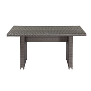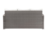 Enjoy conversation in your outdoor space with this two-tone gray wicker set of a 3-seat sofa, cocktail table with glass top and 2 deep seat chairs.