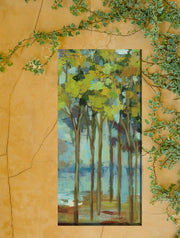 "Woodland Grove" features an abstract watercolor grove of tall thin trees. There are two versions which can be paired or displayed alone.