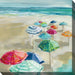 "Party Girls" features an abstract oil painting of colorful beach umbrellas.