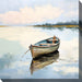 "River Rowboat" features a flat bottom boat floating on a still river.