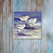 "Sandpipers" features three sandpiper sea birds enjoying the surf on a sunny day.