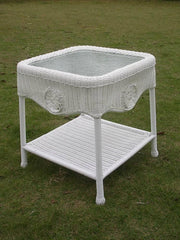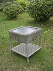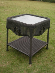 Accent your patio décor with this distinctive side table. It features an attractive hand woven design including a patterned outdoor glass top that's both beautiful and durable. Crafted of resin wicker, aluminum and glass, this table is built to last the elements. Perfect for an extra side table with your existing patio sets.